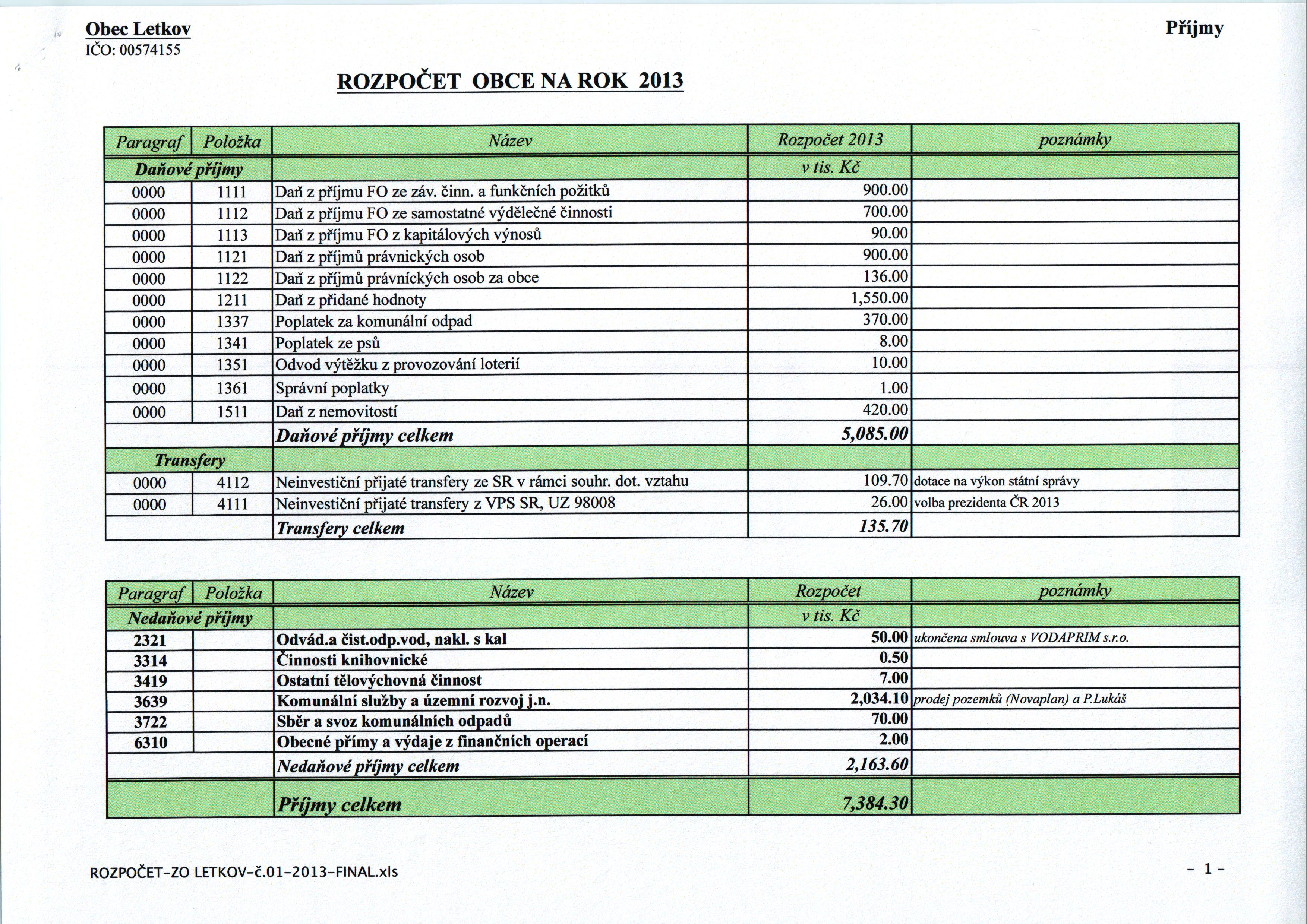 - PŘÍJMY - zde ke stažení